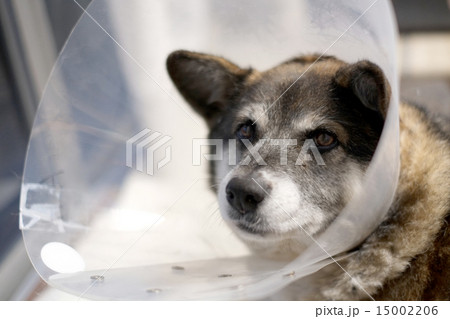 エリザベスカラーを巻いた犬