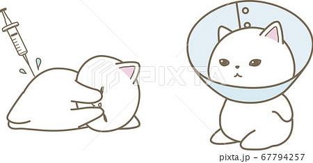 ワクチンを打つ猫とエリザベスカラーをする猫