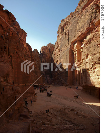 ヨルダン世界遺産ペトラ遺跡のシク 正面にエルハズネ