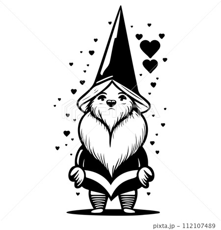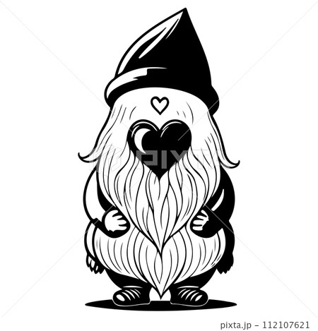 Cute outline gnome little fancy creature for St Valentine simple vector illustration, flat design for love, emotions holiday greeting cards, invitations, banners, romantic fairy tale creature