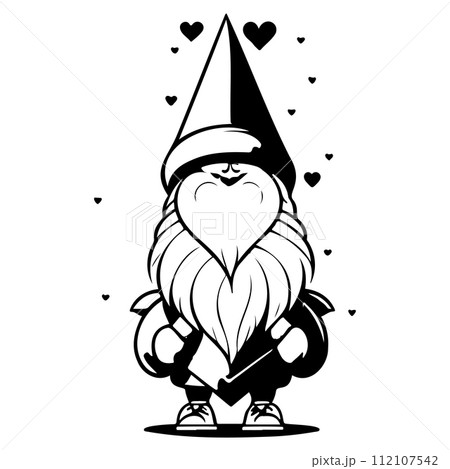 Seamless pattern illustration of a gnome with a beard in a hat. New year and christmas symbol on