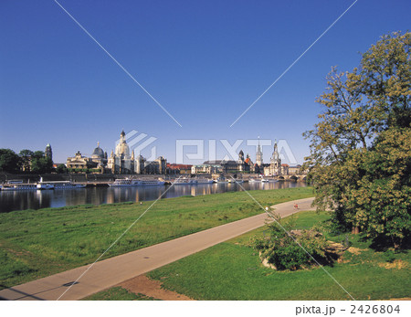 ドイツ、ドレスデンエルベ川対岸から旧市街の大聖堂をのぞむ遠景