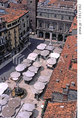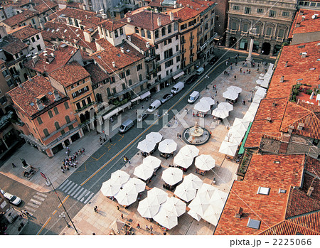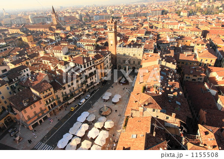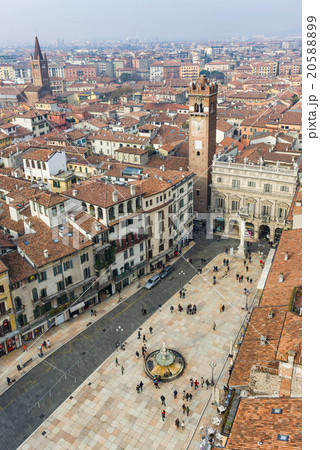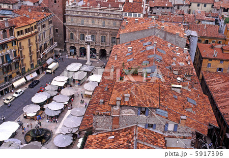 イタリア、ヴェローナ、ランベルティの塔からの眺め、エルベ広場