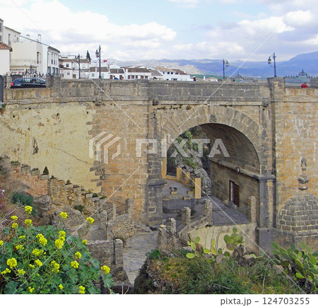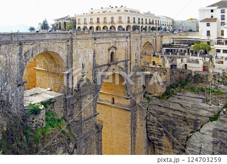 スペイン アンダルシア ロンダ エル タホ渓谷に架かるヌエボ橋と新市街