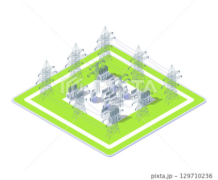 Cartoon Color Electric Substation Object Industrial Energy Building Concept 3d Isometric View Isolated on a White. Vector illustration