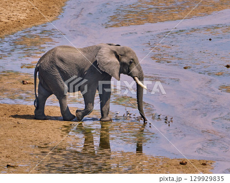 タランギレ国立公園の川を歩くアフリカゾウ