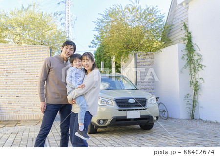一戸建て 駐車 自動車 木の影 陽射し 窓 一軒家 マイホーム