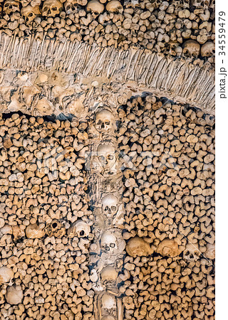 壁一面のドクロ エヴォラ骸骨礼拝堂 ポルトガル