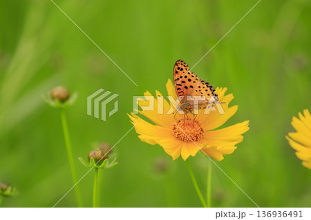 オオキンケイギクの花にとまるツマグロヒョウモン