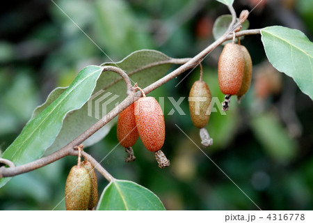 自然 植物 マルバグミ、別名『オオバグミ』。春に熟す実は白い鱗毛に覆われて薄紅色に見える