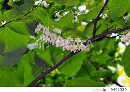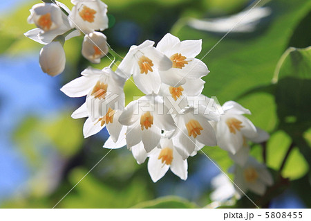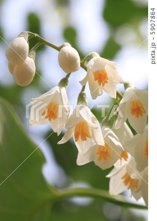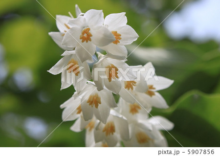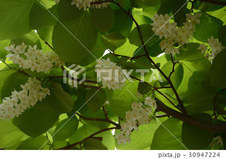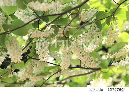 自然 植物 ハクウンボク、黄色い雄蕊の白い花を下向きに沢山咲かせます。息をのむほどの美しさです