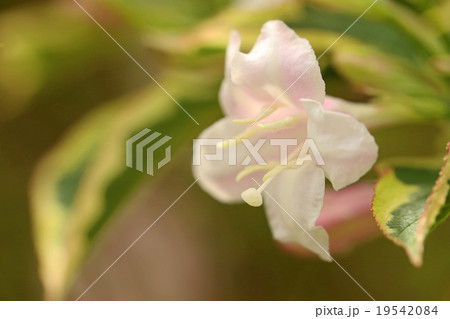 斑入り大紅ウツギの花咲く。花言葉は「豊かで美しい」そして「移り気」。