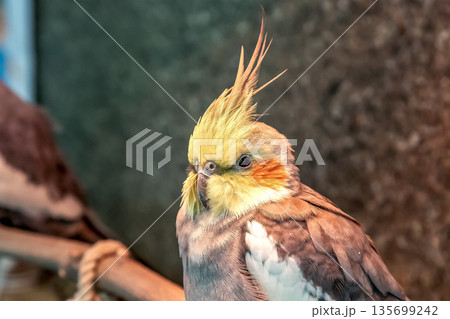 頬に橙色のチークパッチが可愛いオカメインコ容姿