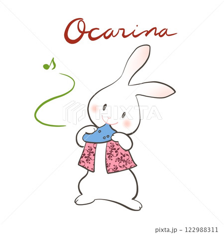 ウサギが楽しそうにオカリナを吹いているイラスト