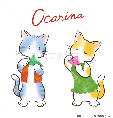 2匹のネコがオカリナを演奏しているかわいいイラスト