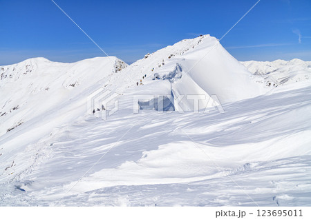 厳冬期の谷川岳・オキの耳へと続く稜線