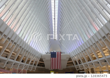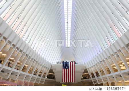 オキュラスの内部空間とアメリカ国旗|ニューヨーク・ワールドトレードセンター