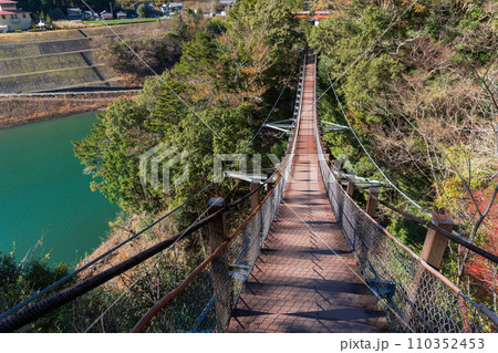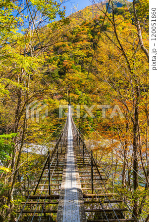 静岡県/宮沢橋と紅葉【八橋(やっぱし)小道ラブ・ロマンス・ロードの階段式吊橋】