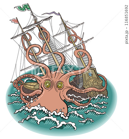 クラーケン (ダイオウイカ・巨大タコ) 触手イラスト
