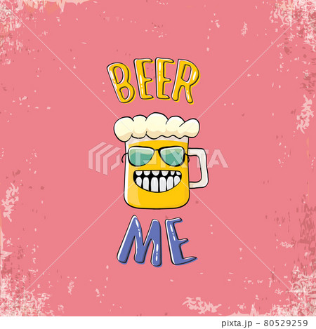 BEER ME vector illustration or summer poster. vector funky beer character with funny slogan for print on tee. International beer day or octoberfest label with slogan