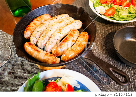 自宅デオクトーバーフェストのための鉄板で焼いたソーセージ