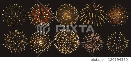 Aerial view of bright fireworks exploding with colorful lights over sea shore on US Independence day holiday