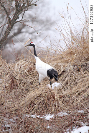 釧路湿原で越冬中のタンチョウ タンチョウ 丹頂鶴 ツル 鶴 釧路湿原
