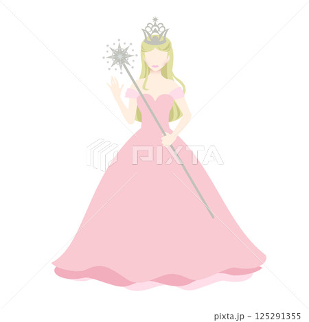 ピンクのドレスを着て魔法のステッキを持った金髪の良い魔女。オズの魔法使いのイメージから。