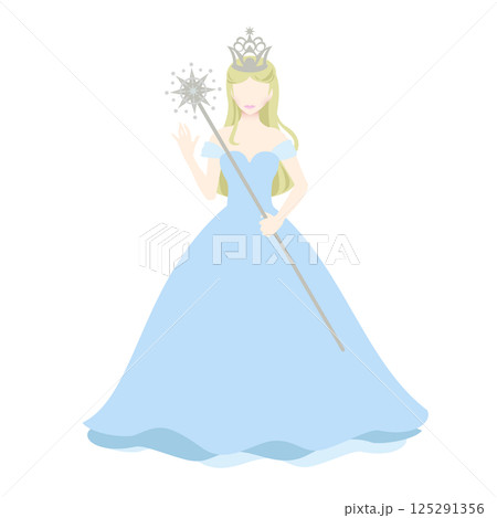 ブルーのドレスを着て魔法のステッキを持った金髪の良い魔女。オズの魔法使いのイメージから。