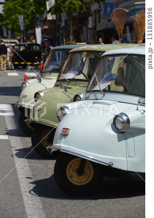 Displaying classic cars 春の祭典でストリートに陳列されたクラッシックカーたち