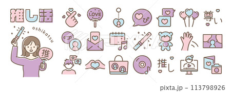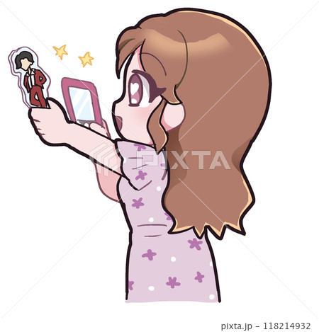 推し活をする女性のイラストセット グッズ 動画鑑賞 オタ活 sns アイドルファン