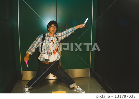 オタ芸 シルエットイラスト ペンライト振り回す ベクター