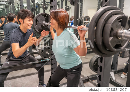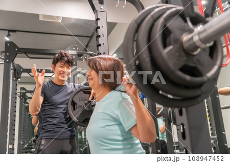 パーソナルトレーニングジム アラ還女性 ダイエット スクワット 中年男性トレーナー