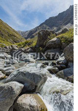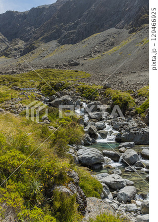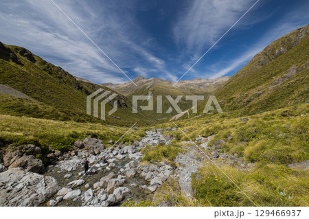 ニュージーランド アーサーズ・パス国立公園のオティラ・バレー・トラックを流れるオティラ川