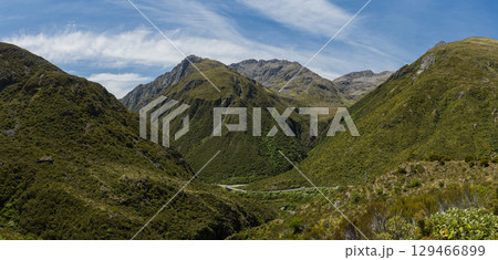 ニュージーランド アーサーズ・パス国立公園のオティラ・バレー・トラックからの風景