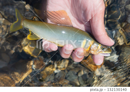 釣り上げた鮎、鮎釣り、アユ、あゆ、友釣り