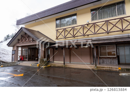 雪の残る後生掛温泉 秋田県鹿角市