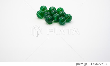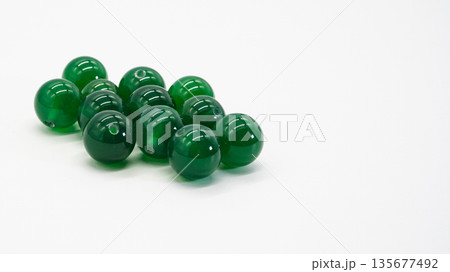 グリーンオニキス 丸玉ビーズ 白背景 マクロ撮影