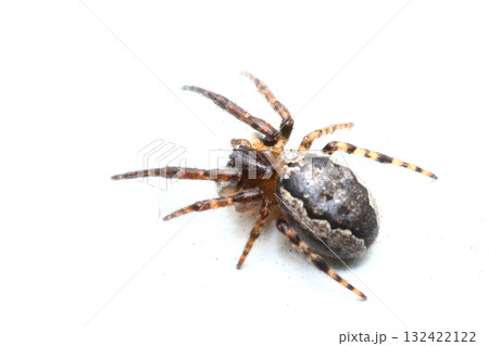 生き物 蜘蛛 ドヨウオニグモ、メスです。小型で美しいオニグモ、体の大きさは一センチ弱