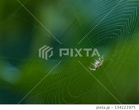 生き物 蜘蛛 ヌサオニグモ、小さめのオニグモ。緑の豊かな公園や林でよく見かけます