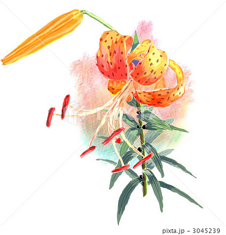 水彩で描いたオニユリ(鬼百合)とビャクゴウ(百合)