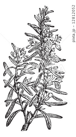 Rosemary or Rosmarinus officinalis, vintage engraving.