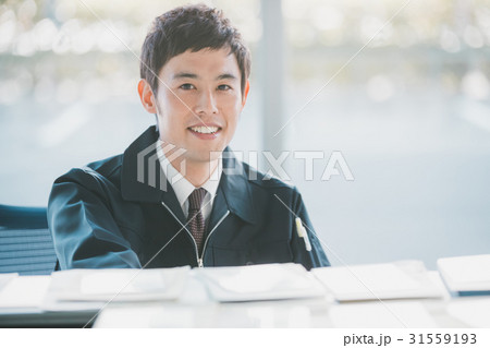 デスクワークをするドライバーの男性