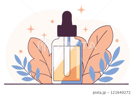 Natural organic face serum. Make up skincare product. Eco friendly lifestyle. Vector illustration