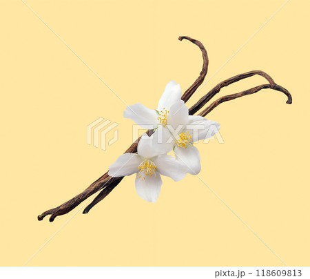 Vanilla stick with flower on vanilla backgrounds. Photo