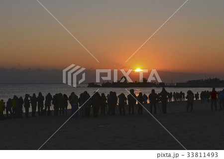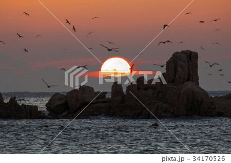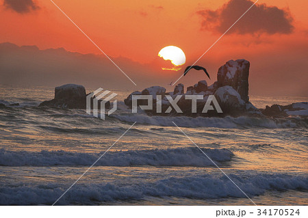 日の出 海 カモメ