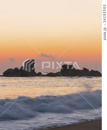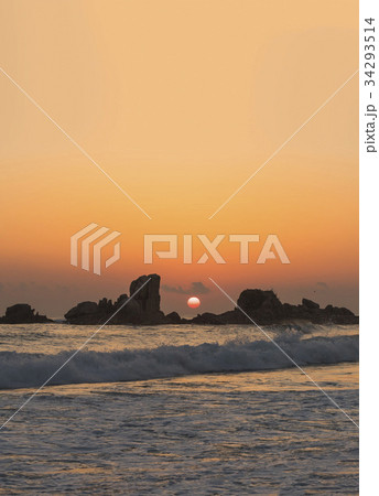 夕焼け 海 オプションの岩