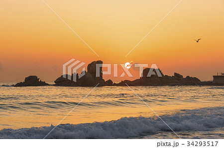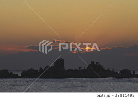 韓国 夕焼け 岩