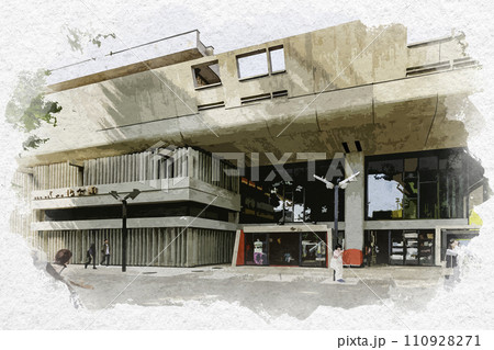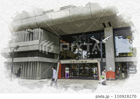 水彩画風 上野公園 東京文化会館 東京都台東区
