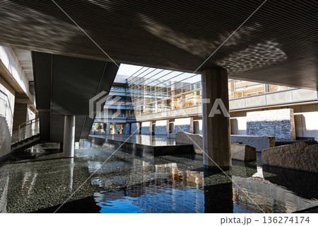 水辺の上に立つ新国立劇場オペラパレスの建造物 東京都渋谷区本町